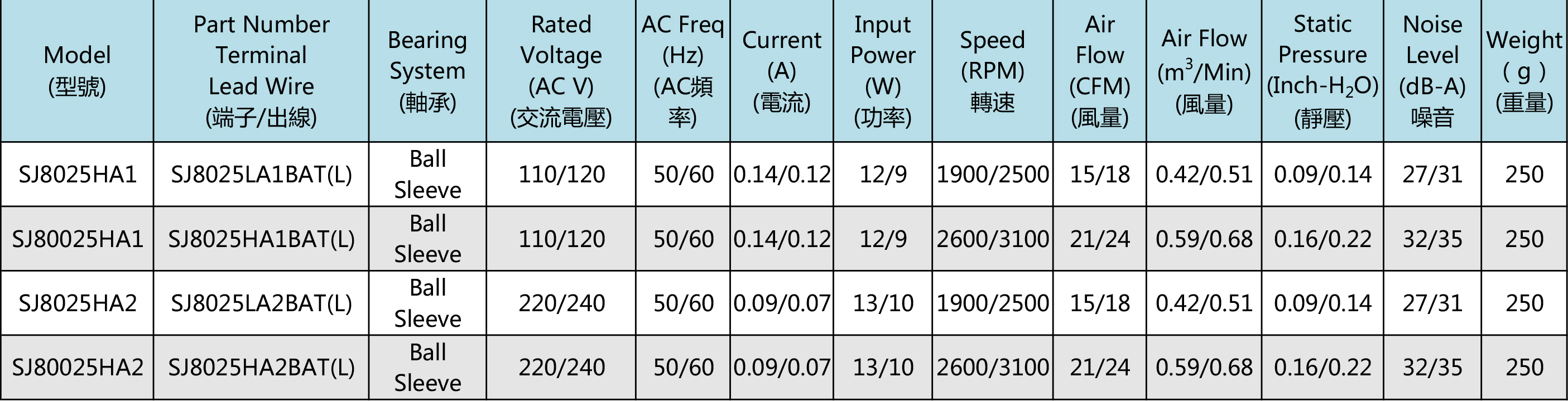 臺灣三巨SJ8025HA2-AC軸流電機