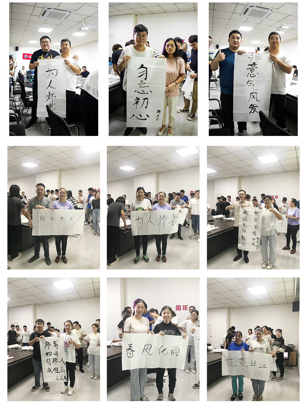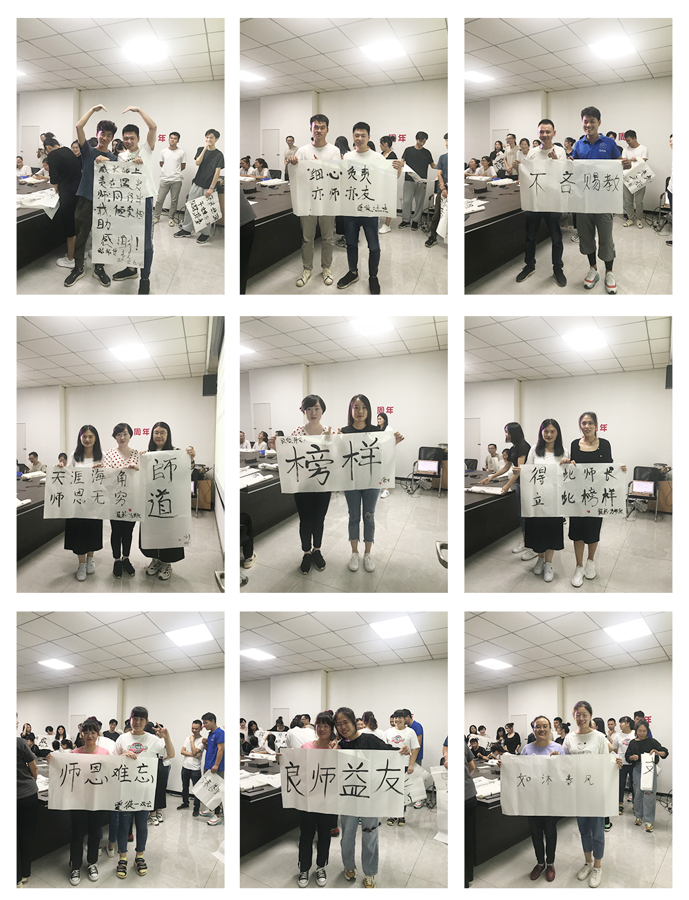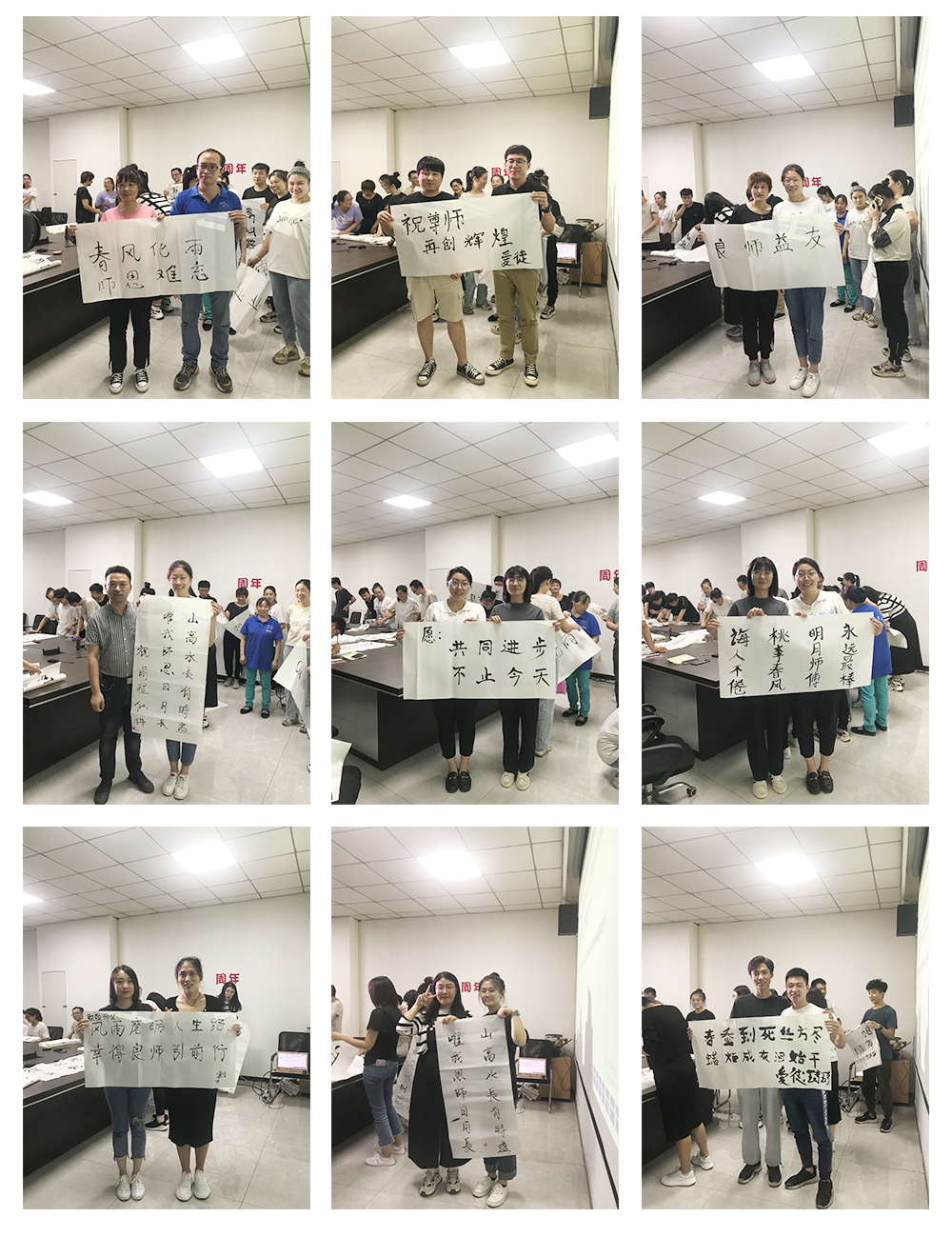 第二個(gè)環(huán)節(jié)是徒弟為師父寫一幅字,表達(dá)對(duì)師父的感恩與敬意。在此期間師父與徒弟共同完成書法,徒弟將書法雙手獻(xiàn)給自己的師父,并與師父合影留念。濃濃的師徒情誼感染了在場(chǎng)的每一個(gè)人。相信在以后的工作中也定會(huì)師徒齊心,完成前方的困難與挑戰(zhàn)。